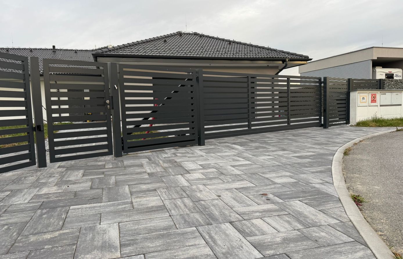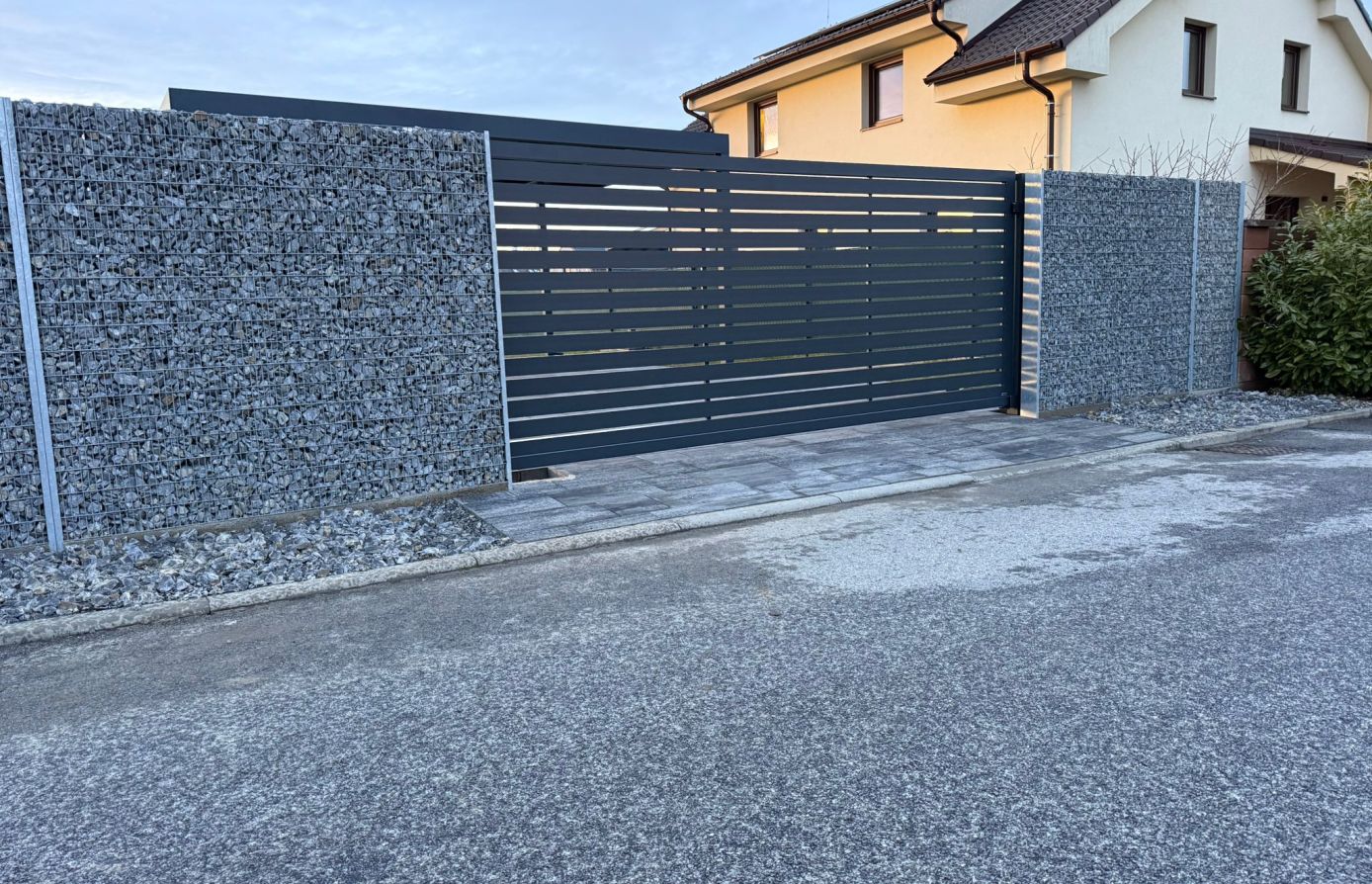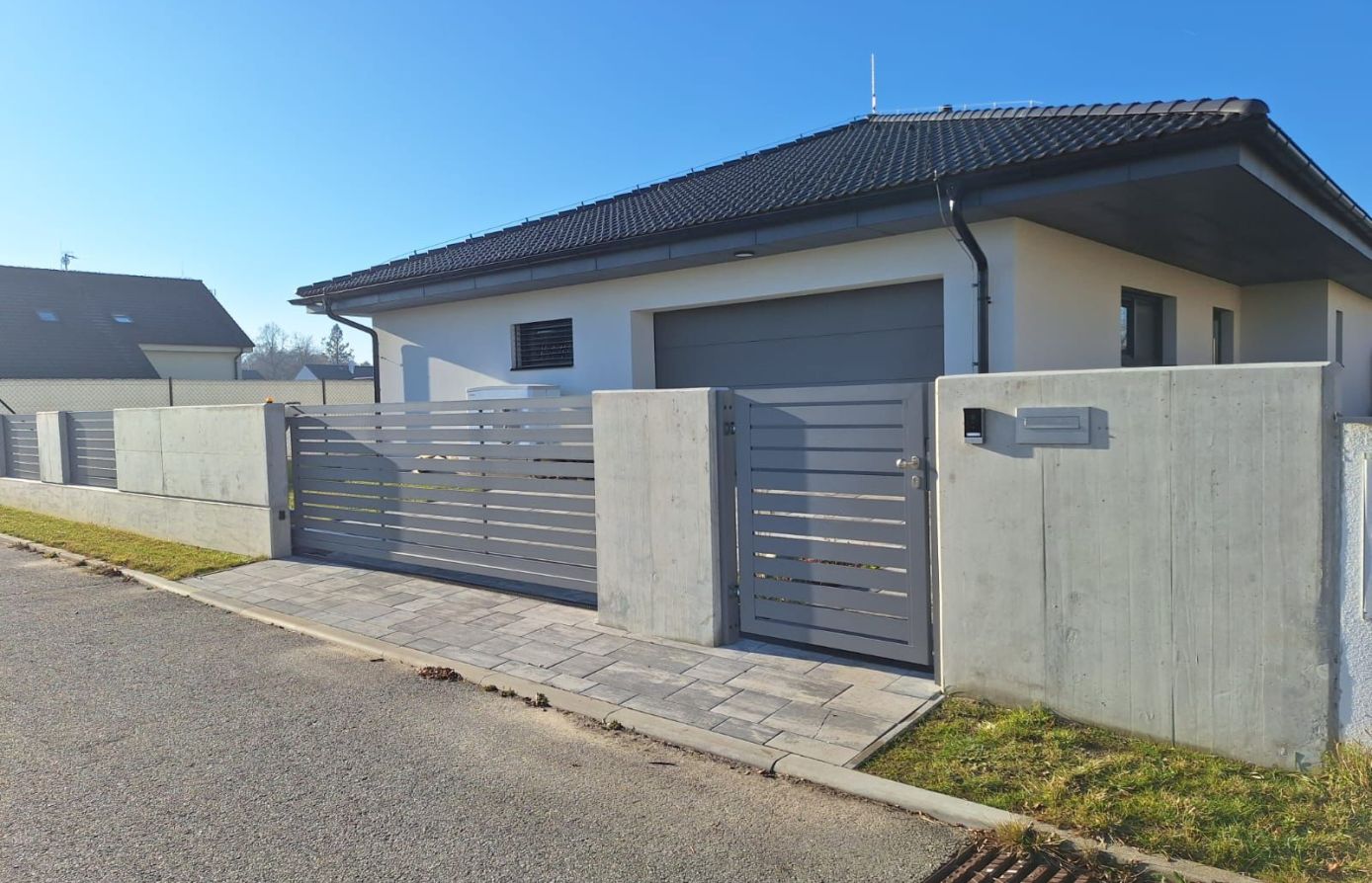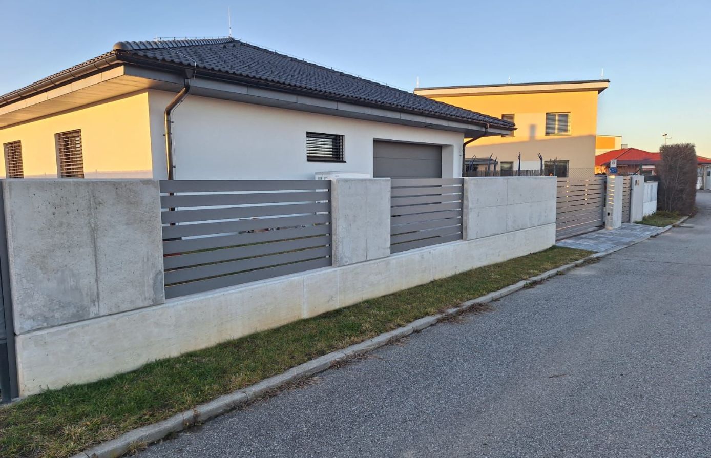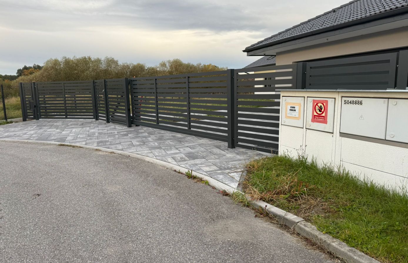 Vodorovné hliníkové lamely v šířkách 60–200 mm dávají volnost designu a umožňují nekonečné kombinace tvarů i barev pro plot přesně podle vašich představ.