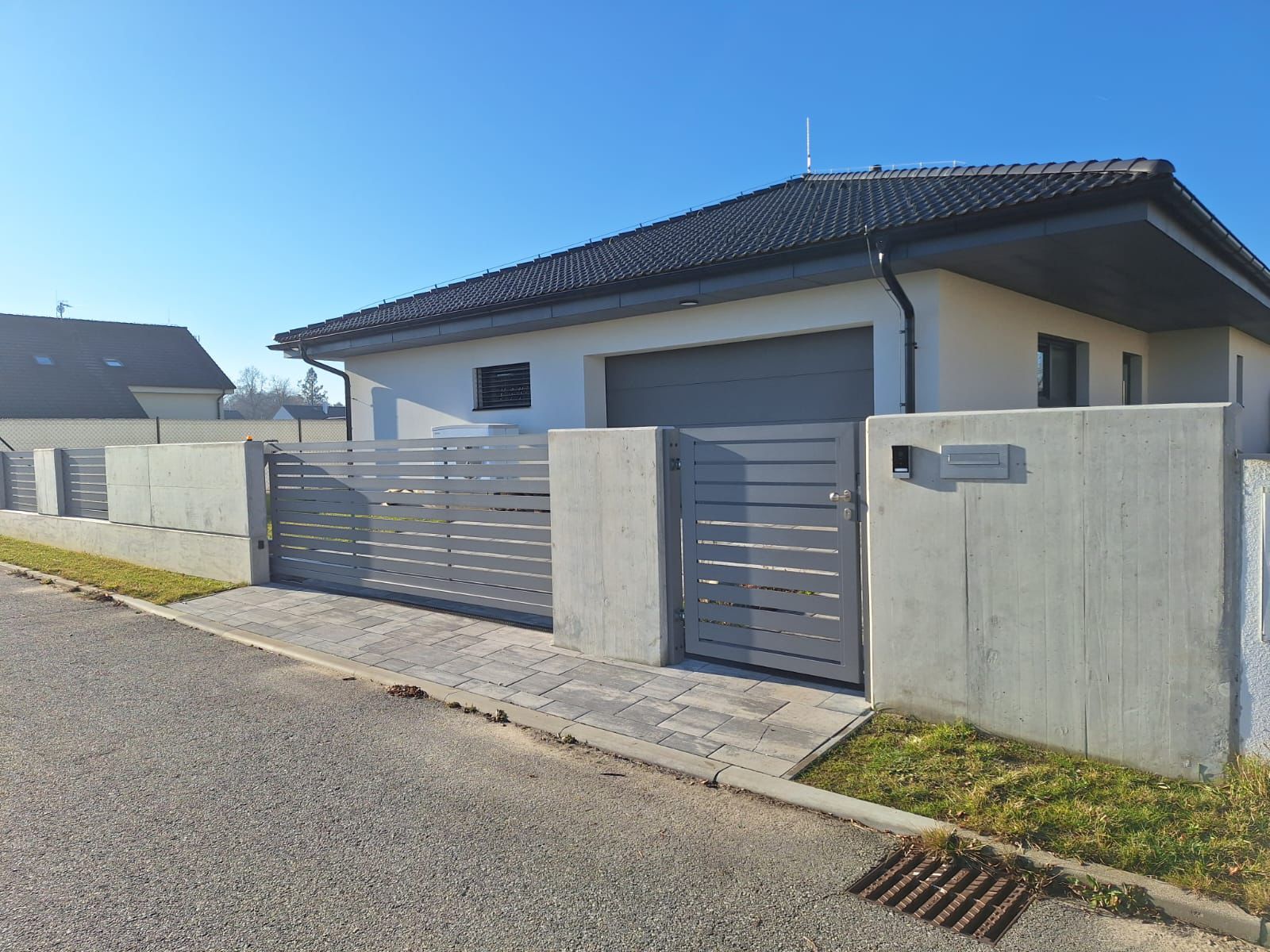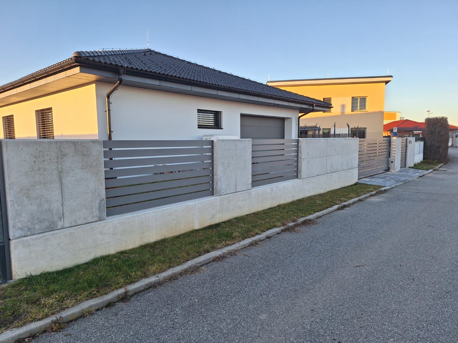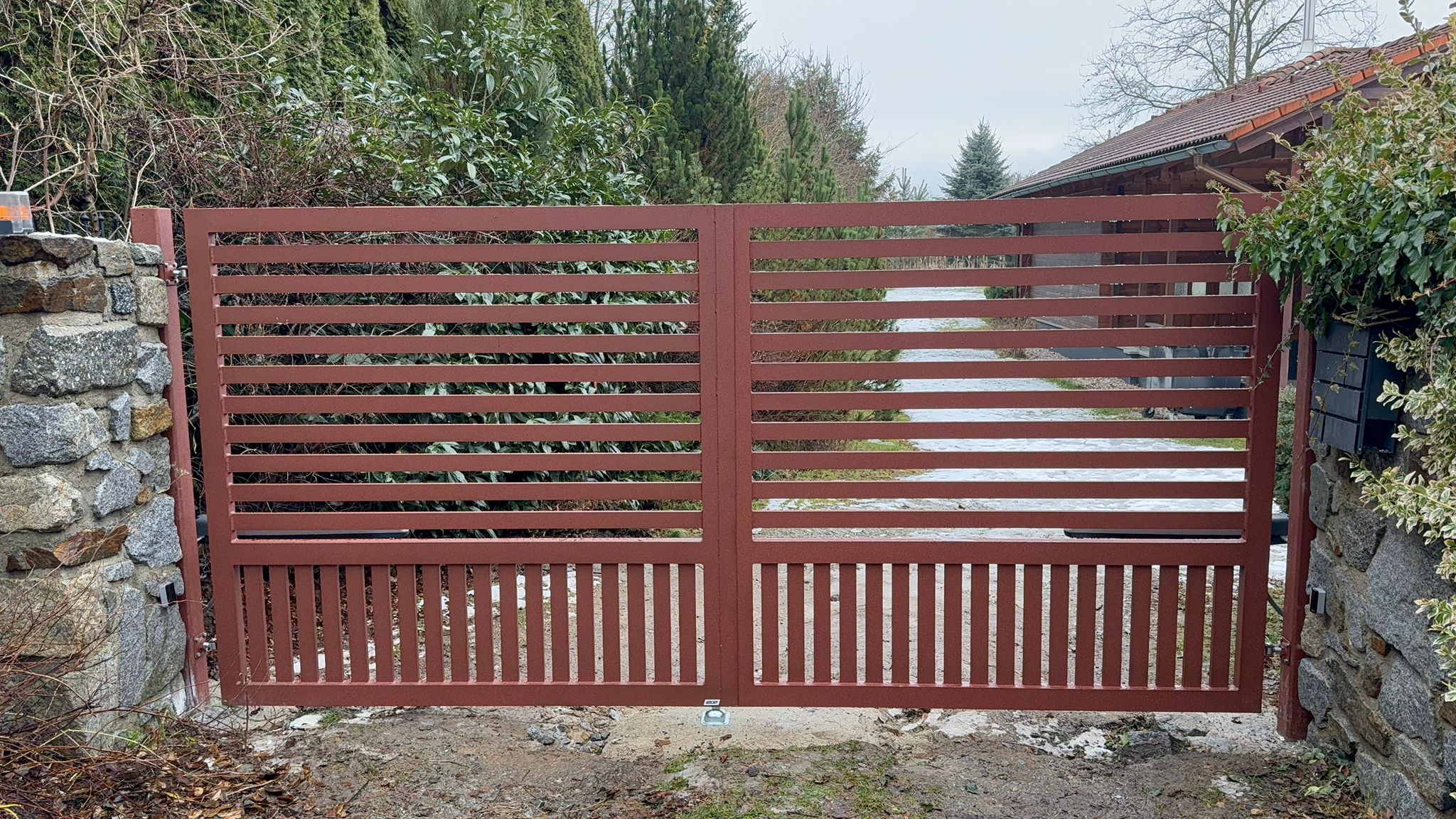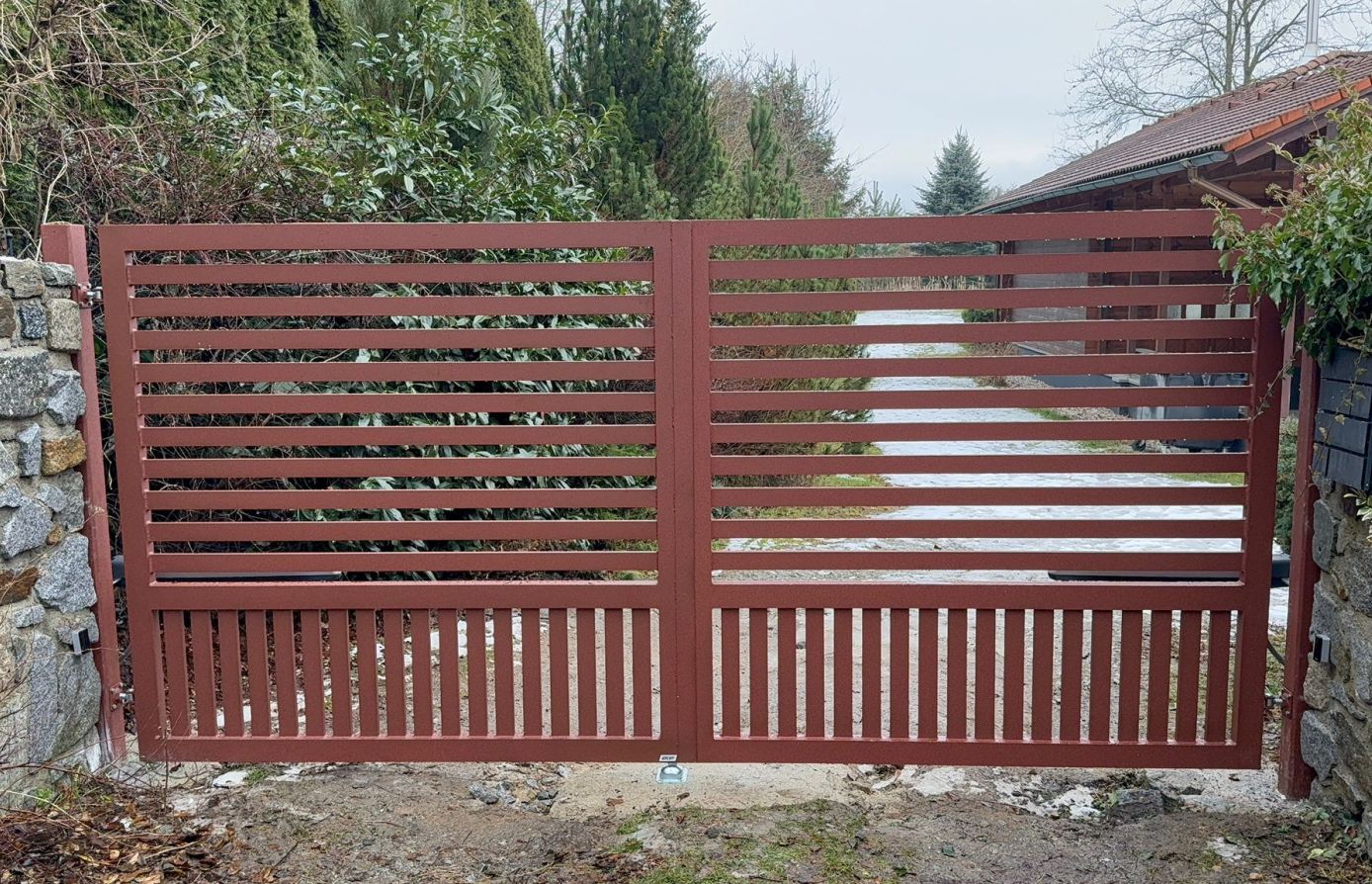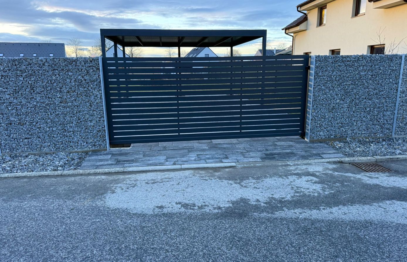Vodorovné hliníkové lamely v šířkách 60–200 mm dávají volnost designu a umožňují nekonečné kombinace tvarů i barev pro plot přesně podle vašich představ.