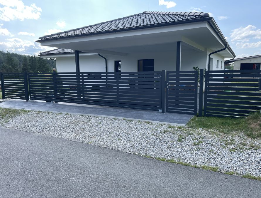 Designový hliníkovy plot s uchycením pod zem